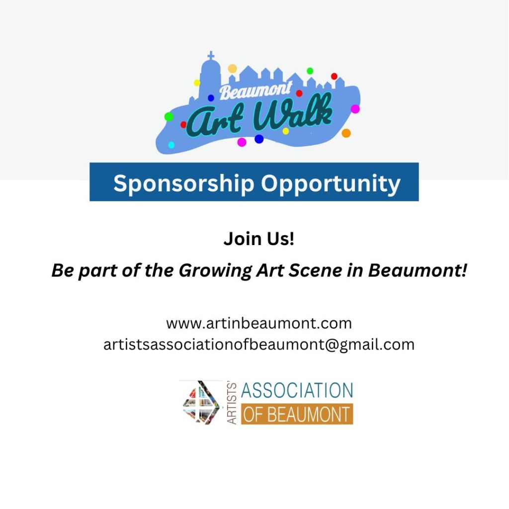 We are also always appreciative of sponsors! If you are a business or individual who would like to support this amazing community event, email AAB and request a sponsorship package. If you would like more information about the Beaumont Art Walk, you can check out our website artinbeaumont.com or our Facebook or Instagram accounts Artists’ Association of Beaumont and contact us if you have any questions!